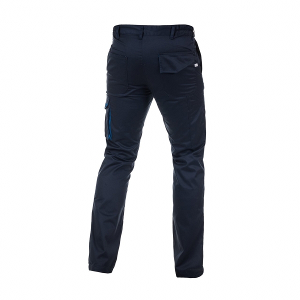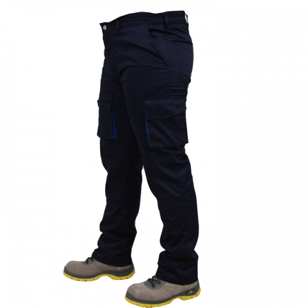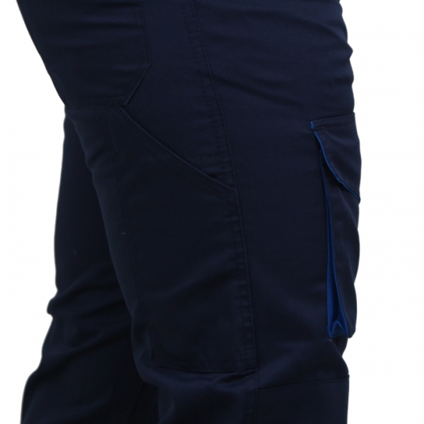 Κλείνει μπροστά με φερμουάρ υψηλής αντοχής και μεταλλικό κουμπί. Μία πλαϊνή τσέπη στον αριστερό μηρό που κλείνει με καπάκι και velcro. Μία τσέπη μπροστά στο δεξί μηρό που κλείνει με καπάκι και velcro. Δύο τσέπες λοξές μπροστά μία τσέπη που κλείνει με καπάκι πίσω δεξιά και μία τσέπη χωρίς καπάκι πίσω αριστερά. Μία τσέπη εργαλείων στο δεξιό μηρό. Θήκη για επιγονατίδες. Διχρωμία στις τσέπες. Πονταρισιές στο χρώμα της διχρωμίας. Διακοσμητικός κρίκος. Πέντε θηλύκια για συγκράτηση ζώνης
