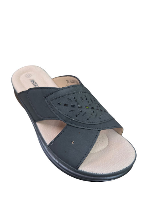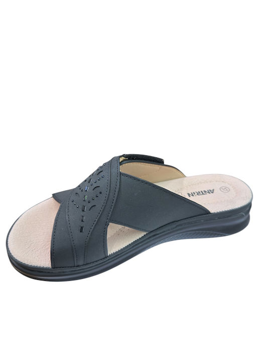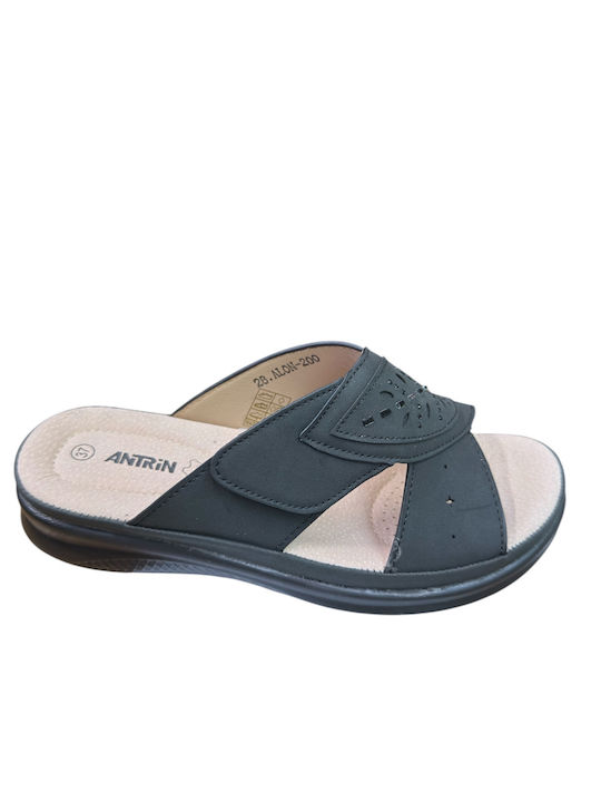 Ανατομική γυναικεία παντόφλα ANTRIN σε κομψό μαύρο χρώμα, ιδανική για άνεση και στυλ στην καθημερινότητα. Διαθέτει εργονομικό σχεδιασμό που στηρίζει σωστά το πέλμα, προσφέροντας ξεκούραστο βάδισμα όλη μέρα.