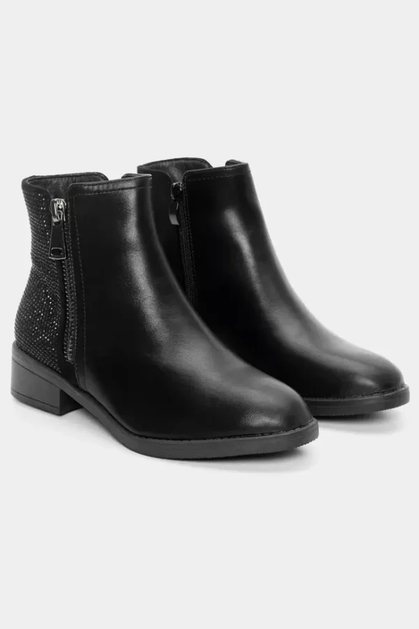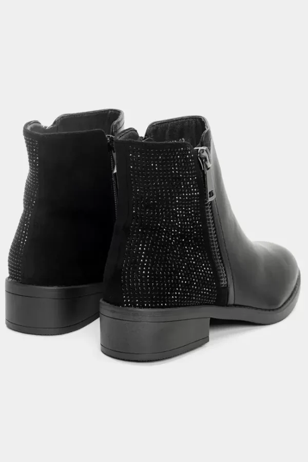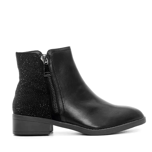 Μποτάκια Αστραγάλου με Διακοσμητικό Φερμουάρ & Strass Μαύρο