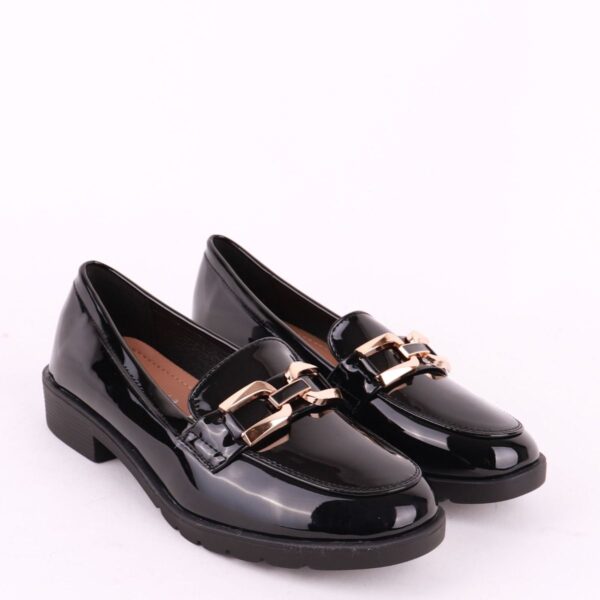 Γυναικεια Loafers με διακοσμητική αγκράφα – Μαύρα-Λουστριν