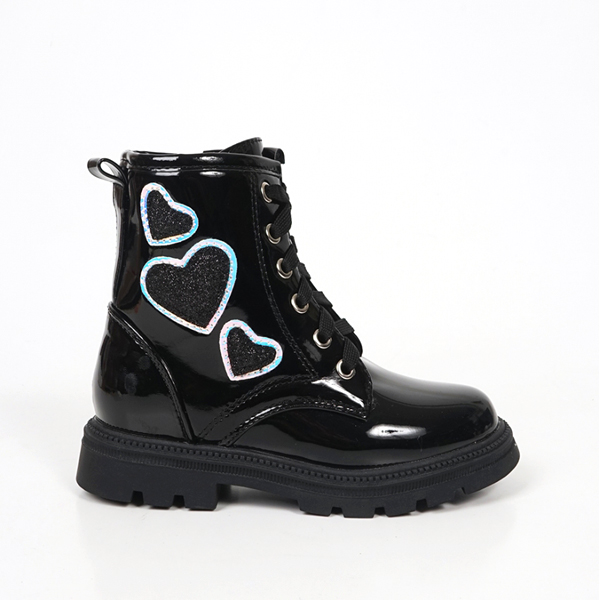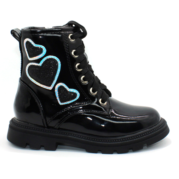 Παιδικό αρβυλάκι για κορίτσια  Αρβυλάκι σε μαυρο χρώμα, κατασκευασμένο από δέρματινη λουστρίν και στολισμένο με ροζ glitter καρδιές στα πλαϊνά και Love στο πλαινομέρος. .  Τα κορδόνια στο μπροστά μέρος και το φερμουάρ στο πλάι χαρίζουν τέλεια εφαρμογή. Αρβυλάκι που συνδυάζει την υψηλή ποιότητα με το εντυπωσιακό design.